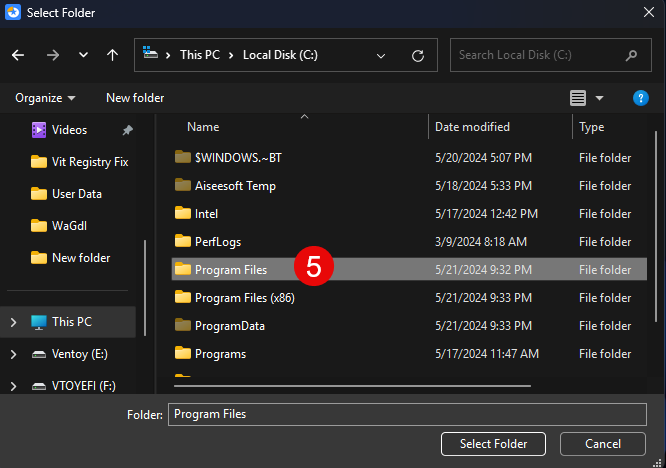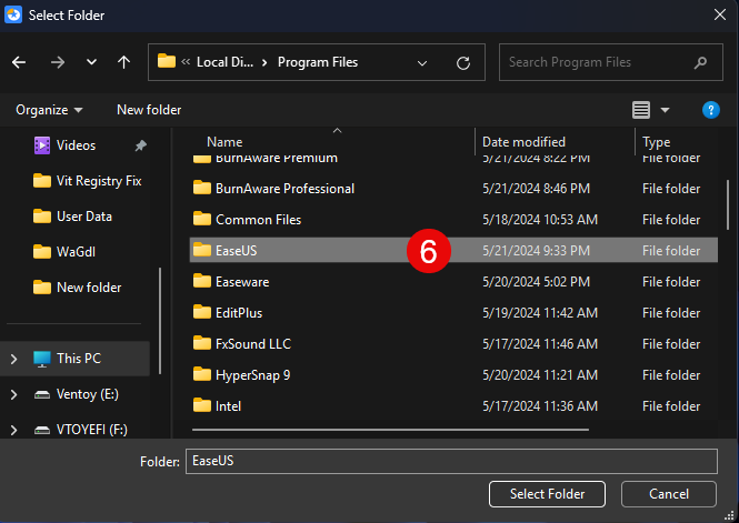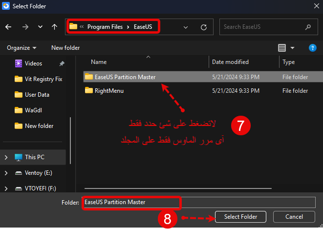 لاتدخل مباشره من أيقونة البرنامج ولكن حدد مجلد البرنامج من البروجرام فيلز C:\Program Files\EaseUS شاهد الصور